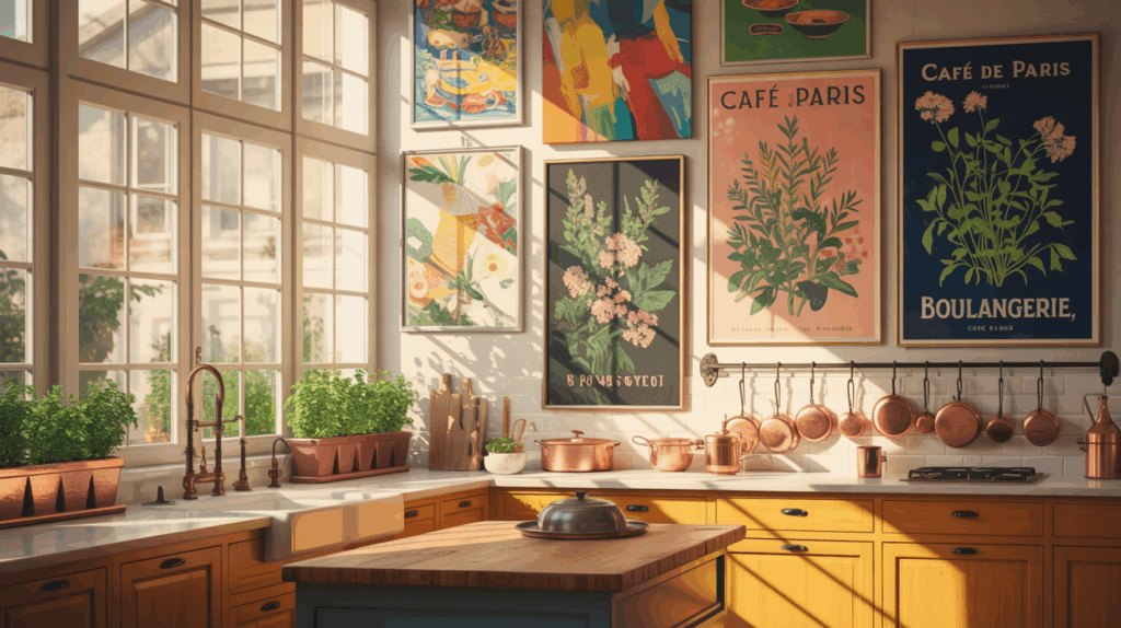 Choosing artwork that sparks joy in the kitchen starts with clarity: pick pieces that align with how you move and breathe in the space. You’ll measure how a piece guides traffic, sets focal points, and supports task flow. Consider scale—avoid crowding counters; choose a single statement or a small trio. Vintage posters offer crisp line and nostalgia, while botanical prints bring calm, fresh energy. Balance color with cabinets and lighting, and guarantee the work surfaces remain practical. Prioritize provenance, framing, and installation height for legibility. Your picks should feel effortless, intentional, and easy to admire while you cook.