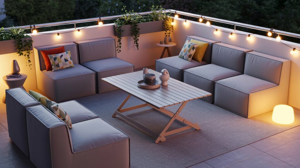 - Choose modular cushions and tables with UV-resistant finishes for year-round use.