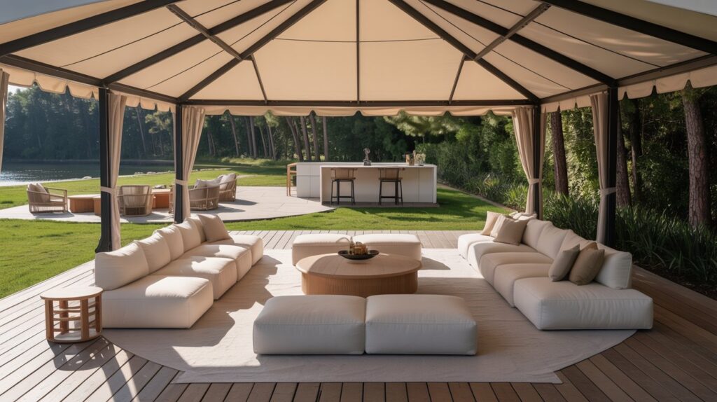 - Define zones for shelter, dining, lounging, and storage to support versatile entertaining and relaxation.