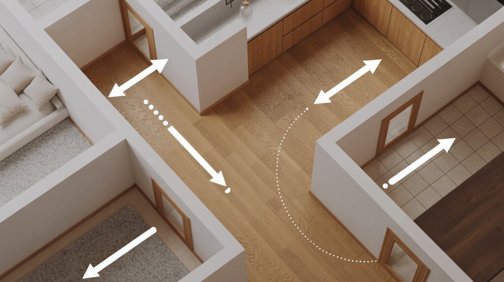 - Cohesive transitions guide eye movement and reinforce a single spatial story across rooms.
