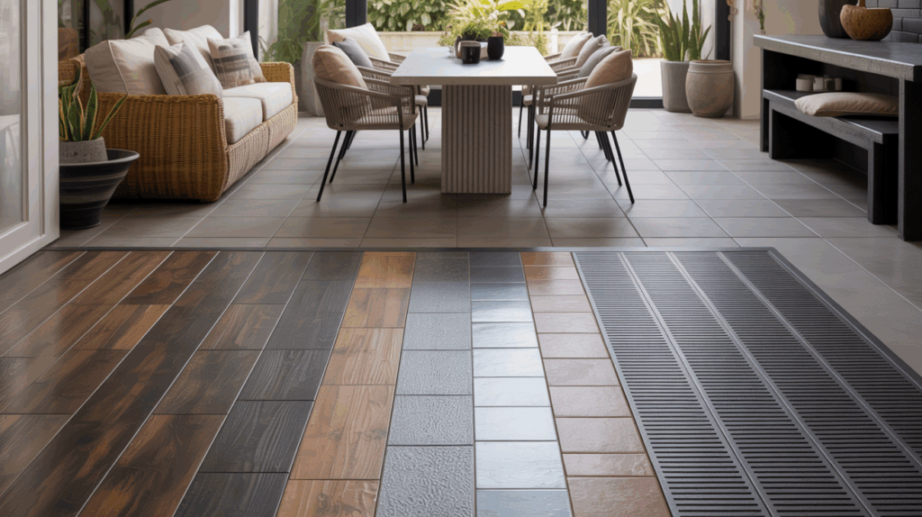 Choosing durable, non-slip surfaces is all about practical safety and easy maintenance. You want materials that grip, clean easily, and resist weather. Think through use, pets, and furniture placement to avoid slick zones around decorative lighting. Here’s how to prioritize: