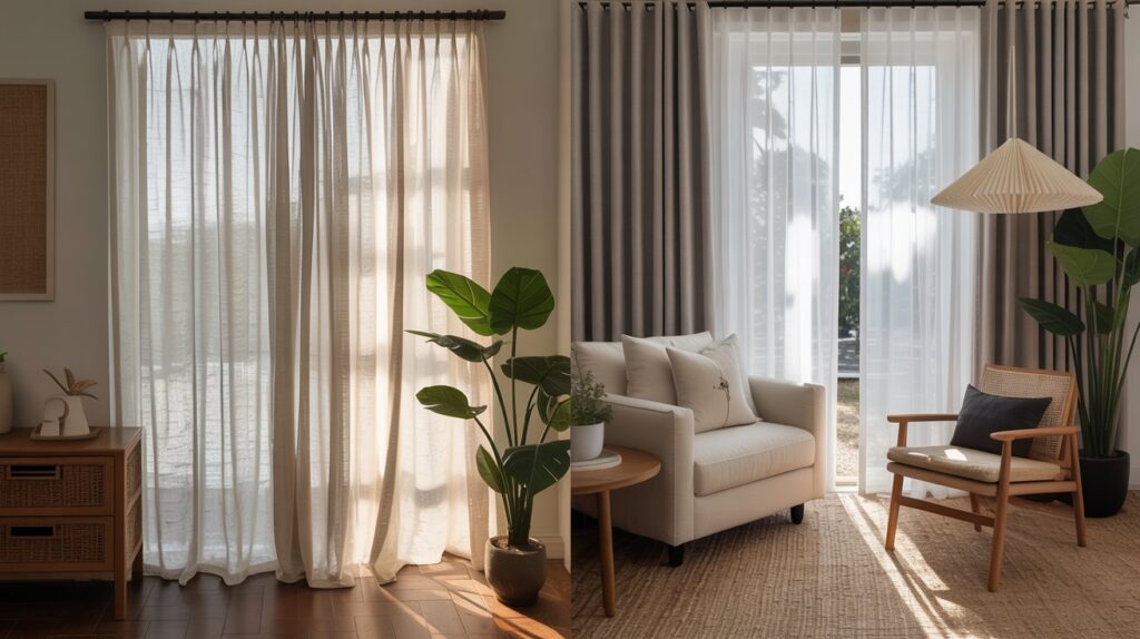 - Curtains and screens block sightlines while still letting light filter through for privacy without darkening rooms.