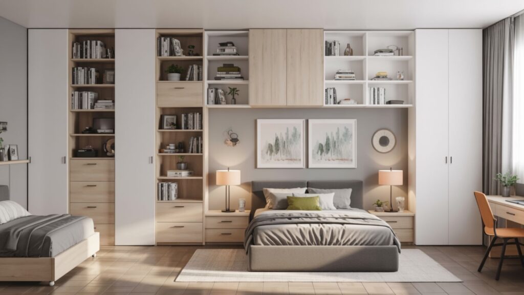 Maximizing space with flexible configurations means furniture that adapts to how you live. You design around daily routines, not rigid rooms. With space saving beds, you reclaim floor area without sacrificing comfort, and they fold, pop, or slide to reveal storage or a desk. It’s like your bed is doing a magic trick every morning. Modular shelving lets you reconfigure vertical real estate as needs shift, avoiding clutter and promoting clean sightlines. Choose components that lock securely and align visually for a calm, cohesive look. Use neutral tones with subtle contrast to emphasize form. This approach delivers practical, stylish efficiency, enabling seamless progression between work, rest, and leisure. I mean, who doesn’t want that kind of smooth transition.